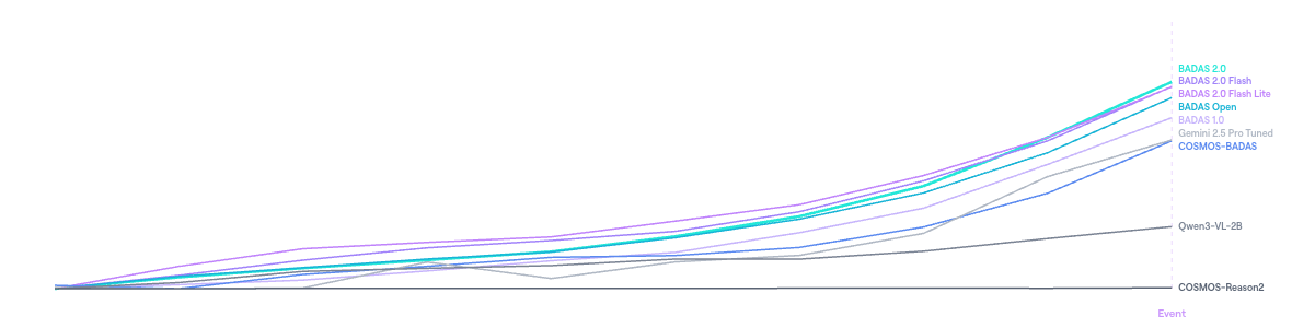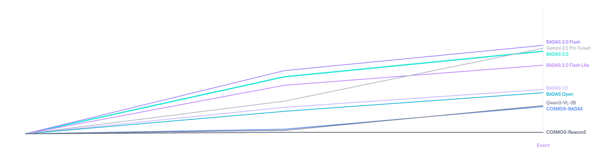 Cloud analytics teams run the full 300M model. Edge ADAS integrators deploy BADAS 2.0 Flash. IoT manufacturers ship BADAS 2.0 Flash Lite. Same architecture, same training, same world model – scaled to your needs.