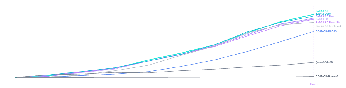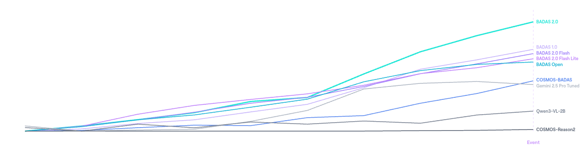 BADAS 2.0 is a world model that has internalized physics and causality. We trained it on 2M real-world driving clips. We fine-tuned NVIDIA's COSMOS on the same data. BADAS wins – at 91x fewer parameters. We publish everything. Try it yourself.