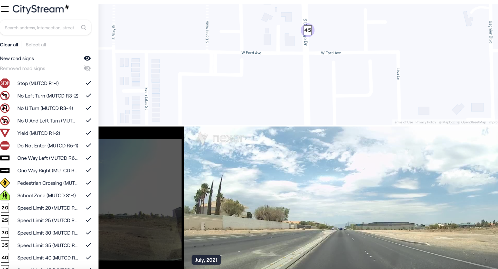 For the public sector, change detection is important since it is incredibly helpful in understanding which road signs need attention, right now. Instead of waiting for surveyors or, even worse, for complaints, Nexar simply points out the changes. Some may be just like the example above: a new speed limit sign. Yet, in cases of damaged or missing signs (or the appearance of a sign that wasn’t supposed to be there), a list of changes can be incredibly valuable for any road or city official. Today, cities and DoTs manually check these signs using road inspectors - a costly and manual operation - which can also result in human error. By highlighting these changes, Nexar enables easier road management.