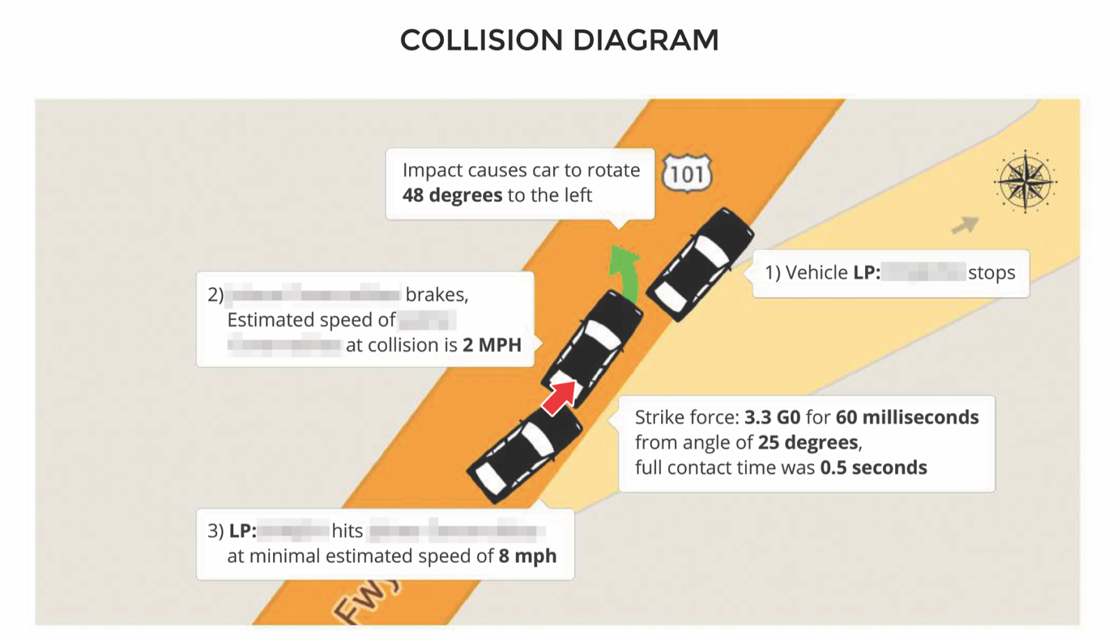 In this report, we leverage our sensor fusion and machine vision tech to capture clear evidence of what happened. Our users’ use this report to streamline their insurance claim and prove their innocence.